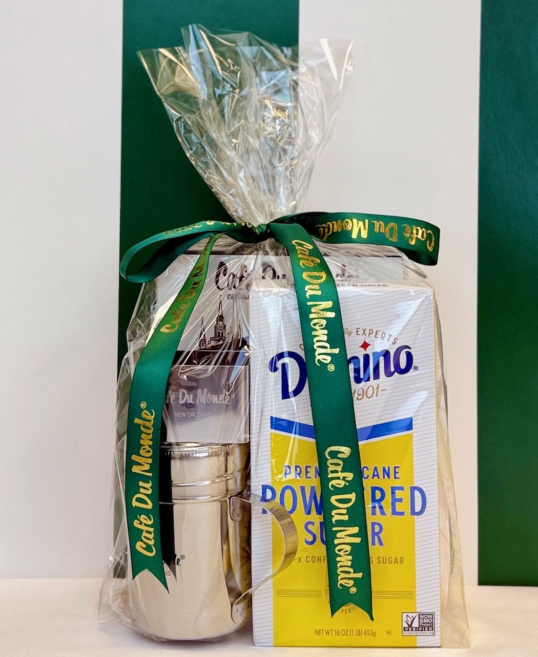 Introducing the Café du Monde De Soto Gift Wrap – the ultimate gift for lovers of New Orleans’ culinary delights. This thoughtfully curated set brings the iconic flavors of our classic New Orleans French Market fare right into your kitchen.