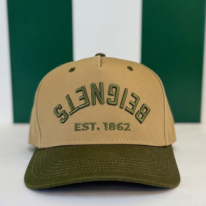 Camo, Dark Green / Beige or Dark Gold / Olive with adjustable snapback.