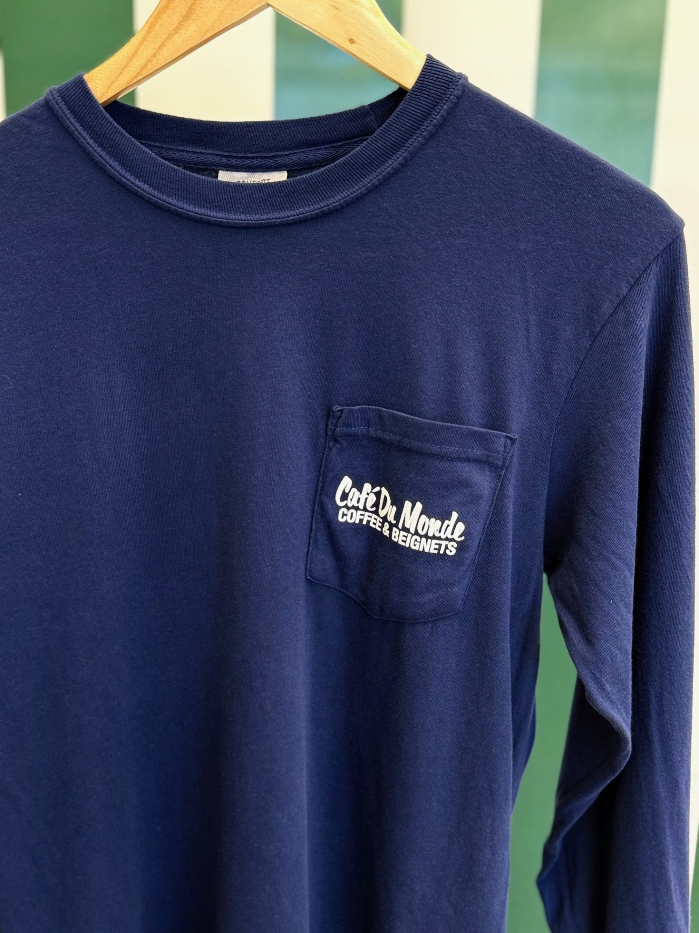 Comfort Colors Long Sleeve Shirt has the Cafe du Monde design on the back.